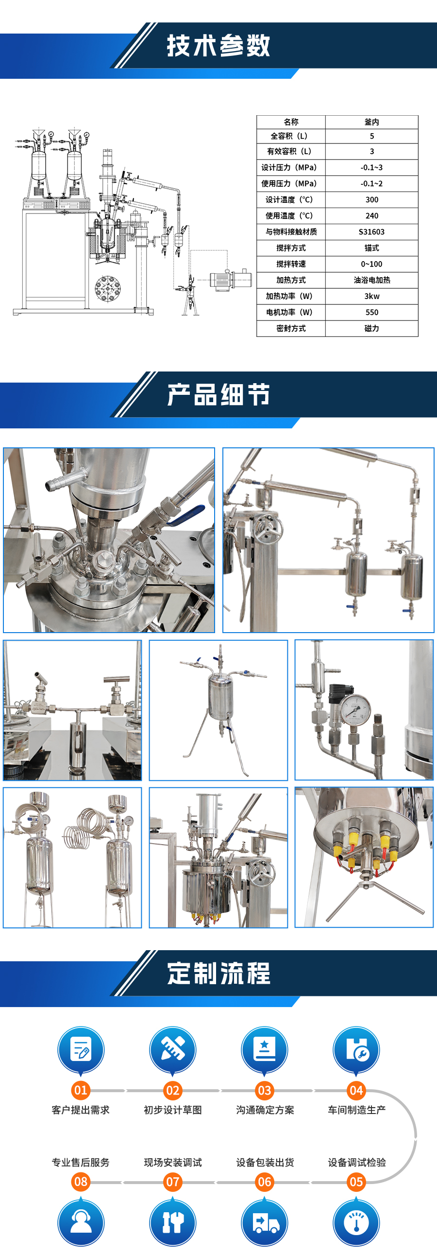 高溫酯化縮聚磁力實(shí)驗(yàn)室反應(yīng)釜 - 非標(biāo)定制參數(shù)